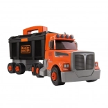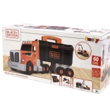 Questo camion con attrezzi B&D farà felici tutti i piccoli costruttori. Il camion da cantiere con rimorchio nasconde una cassetta rimovibile piena di accessori con cui i bambini possono assemblare un modello funzionale di gru. Grazie al design studiato, tutto è riposto in modo ordinato e pronto per il gioco a casa o in viaggio.