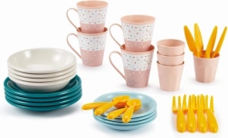 Questo set di stoviglie in plastica è ideale per chiunque voglia organizzare un picnic informale o un pomeriggio in giardino. 32 pezzi in questo set includono piatti, piattini da dessert, ciotole, tazze, bicchieri e posate, tutto realizzato in plastica leggera e resistente. La scatola pratica favorisce un facile trasporto e i bambini possono partecipare in modo sicuro alla preparazione del cibo. La scatola funge anche da tavolino da servizio.