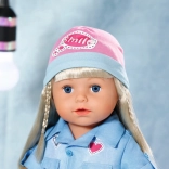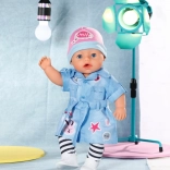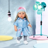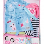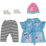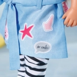 Elegante abito-camicia per la bambola BABY born misura 43 cm con look denim casual e dettagli raffinati. Il set comprende abito con cintura, leggings a righe, berrettino rosa e sneakers bianche. Ideale per il gioco creativo e il dress-up, con enfasi su lavorazione di qualità, vestizione confortevole e ricchi accessori.