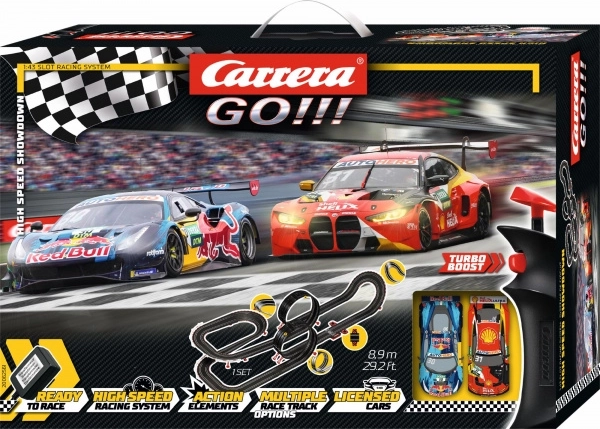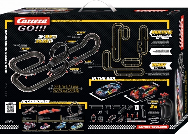 La pista Carrera GO ti immerge nel mondo dell’alta velocità e del controllo preciso. In scala 1:43 ottieni un circuito compatto ma ricco di azione: due loop, curva sopraelevata e parete verticale per manovre adrenaliniche. Il contagiri meccanico mantiene correttezza nelle gare e la funzione Turbo sui comandi dà la spinta necessaria sul rettilineo finale.