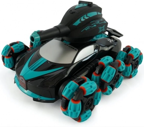 Domina il terreno con l'auto da corsa RC DRIVERO, che non solo si muove in diverse direzioni grazie ai suoi 6 ruote, ma offre anche funzioni interattive come sparo di palline di plastica e l'effetto di fumo dallo scarico.