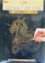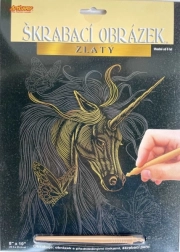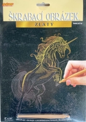Immagine da grattare dorata Unicorno A4, 3 motivi