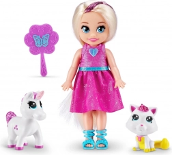 Ogni set include una bambola con outfit riccamente decorato, uno o due teneri animaletti (ad es. unicorno, pony o gattino) e accessori a tema, come un pettinino o uno specchietto magico a forma di farfalla. Le dimensioni compatte sono perfette per i viaggi e la cameretta.