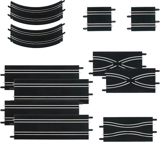 4× rettilineo 342 mm, 2× incrocio, 1× chicane, 2× elementi per parete verticale, 2× rettilineo 114 mm
