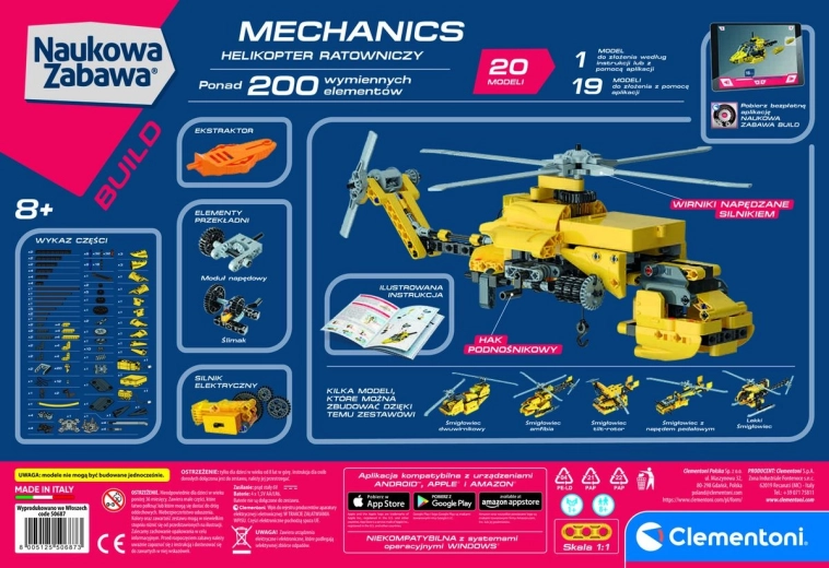 La confezione include l’accesso a un’app gratuita con istruzioni 3D interattive, che ti guidano passo dopo passo nella costruzione. Potrai assemblare fino a 10 modelli diversi e provare 10 soluzioni tecniche, dai meccanismi dei rotori al verricello funzionante e alle derive. La qualità della lavorazione e la produzione in Italia garantiscono lunga durata e precisione dei componenti.