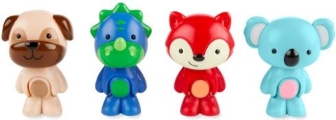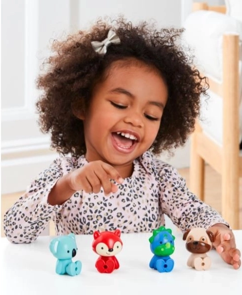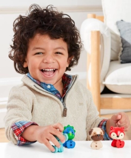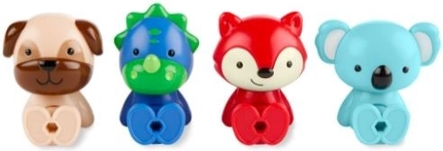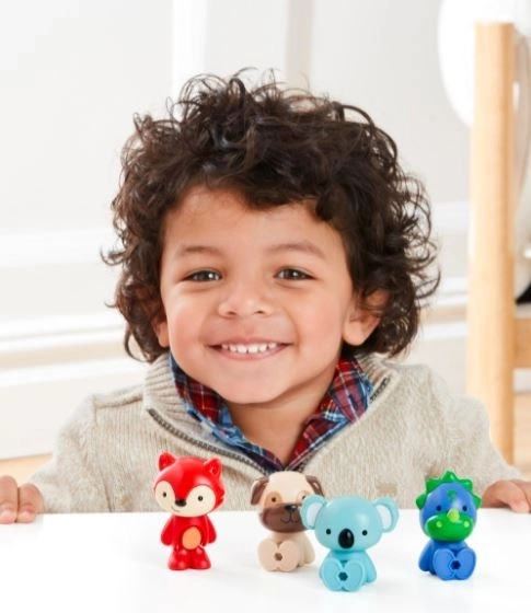 Il set Skip Hop Zoo Crew rallegra ogni cameretta. Quattro figurine colorate – Preston Pug (cagnolino), Ferguson Fox (volpe), Kenzie Koala e Dakota Dino – sono progettate per le manine dei più piccoli, per essere facilmente afferrate, trasportate e posizionate in varie pose. Grazie alle parti mobili possono stare in piedi, sedersi e posare, favorendo il racconto creativo di storie.