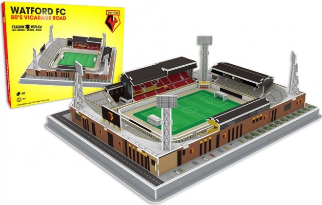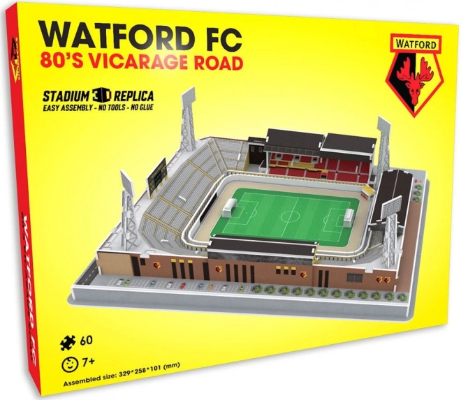 Puzzle 3D dello stadio Vicarage Road, casa del FC Watford, offre ai tifosi del calcio un grande divertimento senza bisogno di forbici o colla.