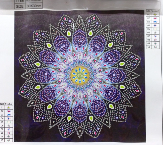 La pittura diamantata 7D si basa sul popolare concetto 5D, ma lo porta a un livello superiore: le pietrine sono di forme e dimensioni diverse, alcune hanno anche motivi decorativi, e si applicano solo su parti selezionate della tela prestampata. Il risultato è quindi più plastico e luminoso e il motivo della mandala blu risalta magnificamente.