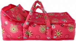 Questa culla portatile in tessuto per bambole è l'accessorio perfetto per tutti i piccoli genitori e le loro bambole. È realizzata con tessuto morbido con motivo floreale, che dona ai bambini una sensazione di comfort e stile.