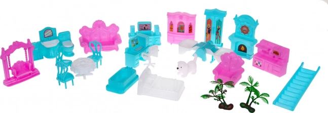 Il set include vari pezzi di costruzione e un arredamento completo per creare un ambiente di gioco realistico.