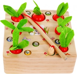 Il gioco in legno con carotine è progettato per stimolare la curiosità e favorire lo sviluppo della motricità fine e la coordinazione occhio-mano. I bambini possono imparare a riconoscere forme e colori e migliorare le loro abilità con la canna da pesca magnetica. Questo gioco è ideale per giocare sia da soli che in gruppo. Con la canna da pesca magnetica, i bambini devono rimuovere tutti i vermi e poi raccogliere le carote per proteggere le verdure in crescita.