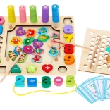 - Composizione di perline: Con 18 schede modello, i bambini potranno replicare schemi su una griglia con fori, esercitandosi nella percezione visiva e nella coordinazione.