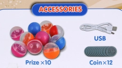| Tutti conoscono i popolari distributori nei centri commerciali dove si può afferrare una mascotte. Vi presentiamo una versione più piccola, un mini distributore che offrirà tanto divertimento per tutti. Il gioco ha effetti sonori e luminosi. Sono disponibili 3 livelli di difficoltà: 30 s, 60 s, 90 s. Il gioco si avvia dopo l’inserimento della moneta di plastica (12 pz inclusi nella confezione). L’obiettivo è afferrare una pallina (10 pz inclusi nella confezione) con l’artiglio all’interno del distributore; a seconda del livello di difficoltà abbiamo 30 s, 60 s o 90 s. Il gioco si avvia dopo l’inserimento della moneta di plastica (12 pz inclusi nella confezione). Durante il tentativo di presa siamo accompagnati da musica vivace. Possiamo inserire una sorpresa nella pallina, rendendo il gioco ancora più interessante. Oltre alle palline, possiamo inserire nella macchina anche piccoli giocattoli, mascotte ecc. Il gioco ha due livelli di volume e la possibilità di attivare/disattivare gli effetti luminosi. Il distributore funziona con 3 x batterie LR20 (non incluse) oppure con cavo USB (incluso). Il giocattolo è destinato a bambini dai 3 anni ed è certificato CE. | |