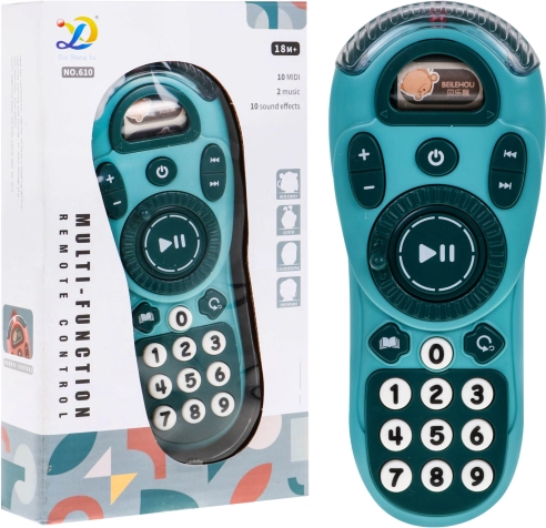 Telecomando interattivo per i più piccoli porta divertimento e apprendimento ai bambini dai 18 mesi. Offre melodie sonore, effetto LED luminoso e pulsanti per regolare il volume e accensione/spegnimento. La rotellina girevole al centro attiva un gioco meccanico sulla parte superiore del telecomando. Alimentazione 3× AA (non incluse).