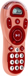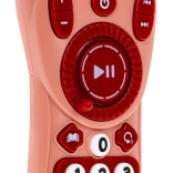 Il telecomando interattivo è progettato per coinvolgere i bambini con un aspetto realistico e molte funzioni. A ogni pressione di un pulsante si accende un LED e si sentono melodie, canzoncine e suoni a tema ispirati a film, notiziari, programmi musicali e fiabe. Al centro è posizionata una rotellina girevole che attiva una funzione meccanica giocosa nella parte superiore del telecomando.
