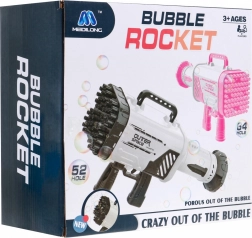 Divertente pistola per bolle dal design futuristico che crea centinaia di bolle grazie alla testina con 52 fori e al suggestivo illuminazione LED. Inclusi un accumulatore ricaricabile 3,7 V, due boccette di soluzione e accessori per un gioco confortevole. Può essere usata anche come piccolo ventilatore portatile – ideale all’aperto e per le feste dei bambini.