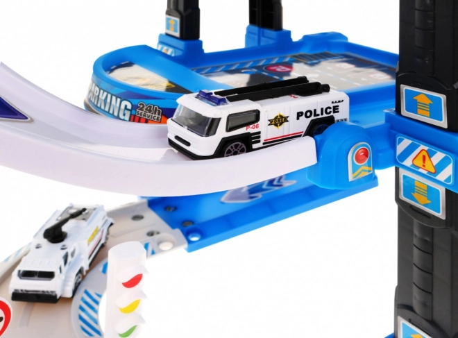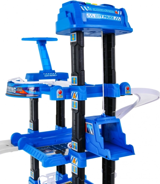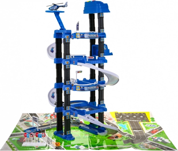| | Il grande parcheggio di polizia multilivello è adatto ai bambini dai 3 anni. Il parcheggio è composto da cinque livelli, raggiungibili con l’ascensore o tramite lo scivolo. Nel passaggio da un livello all’altro il bambino incontrerà molte attrazioni. Al livello inferiore c’è una pista su cui i veicoli possono circolare, mentre ai livelli superiori ci sono posti auto per i veicoli. In cima si trova una piazzola di atterraggio per l’elicottero e un ascensore con luci lampeggianti e suoni che si muove su e giù. Il set comprende due veicoli, un elicottero, segnali stradali e anche un tappetino con strade e edifici per il parcheggio. Il giocattolo è alimentato da 3 batterie AA 1,5V, che sono incluse nel set. |