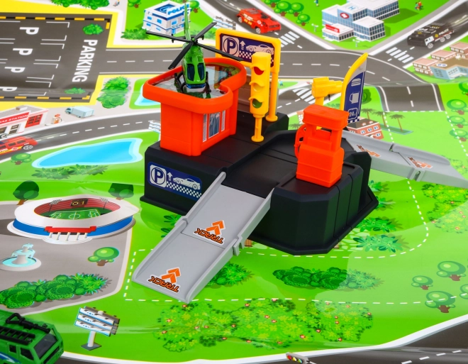 Parcheggio per bambini con eliporto e tappetino da gioco 3+