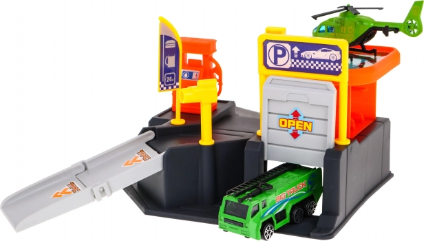 Questo colorato set in plastica trasforma la cameretta in un piccolo centro del traffico. Il parcheggio a due livelli con rampe e eliporto è completato da un pratico tappetino con città e strade, su cui i bambini possono guidare la macchinina e far atterrare l’elicottero. Grazie alle dimensioni compatte, trova facilmente posto nella stanza dei bambini e si riordina in un attimo.