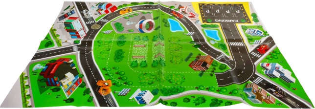 Parcheggio, macchinina, elicottero, adesivi, tappetino da gioco con strade