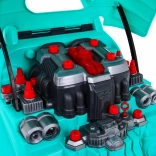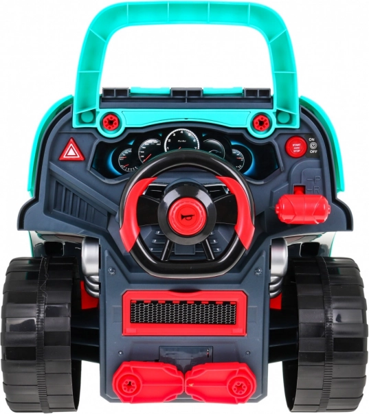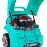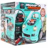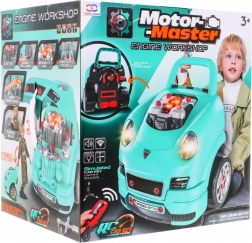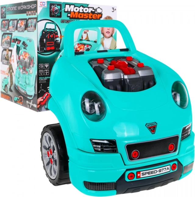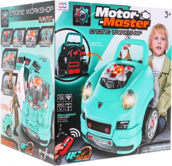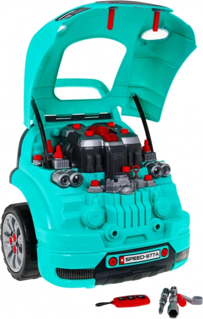 Questo set completo da “piccolo meccanico” include la parte anteriore dell’auto con un motore riccamente accessoriato da montare e smontare, un cruscotto funzionante con pulsante di avviamento, un volante con clacson e segnale di avviso. I bambini possono “fare manutenzione” a candele, ruote e componenti del motore, mentre luci e suoni si controllano con il telecomando incluso.