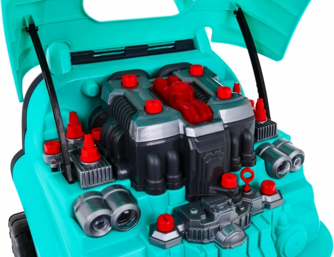 Sotto il cofano ci sono molti componenti da montare e smontare: candele, elica, cinghie e coperture. I bambini possono provare vere procedure di officina in modo sicuro e giocoso.