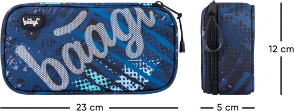 L'astuccio ha una doppia patta ribaltabile con passanti in gomma per riporre ordinatamente gli strumenti di scrittura, una tasca trasparente per l'orario scolastico e una tasca separata con zip per gli oggetti più piccoli. Il logo riflettente BAAGL sul frontale aumenta la sicurezza in condizioni di scarsa visibilità.
