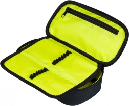 Lo spazio interno è dotato di passanti elastici e una tasca con zip che permette un'organizzazione efficace degli strumenti di scrittura.