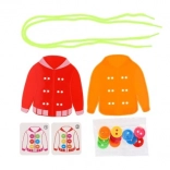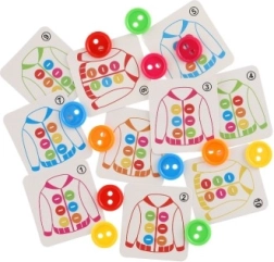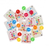 Gioco educativo Cucire bottoni è progettato per sviluppare la motricità fine e insegnare ai bambini a riconoscere i colori e a contare. Il set include: