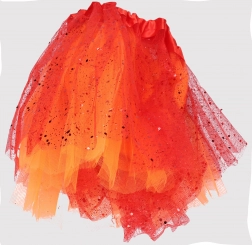 Leggera e giocosa gonna da carnevale con doppio strato in mix di 3 colori. Accessorio ideale per costumi e feste, con pratica lunghezza di 29 cm.