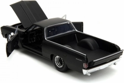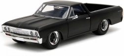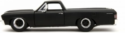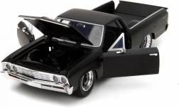 Con il modello dettagliato Chevrolet El Camino 1967 della serie Veloci e furiosi puoi riportare a vita le scene di corsa dei film direttamente a casa tua. Aprendo le porte, scoprirai gli elementi interni ben studiati e il vano motore cromato.