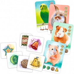 Nell’ingegnoso e vivace Pets & Friends vi metterete sulle tracce dei giocattoli perduti degli animali domestici. Per i simboli trovati correttamente otterrete carte dei cuccioli che vi porteranno punti a fine partita e sbloccheranno utili abilità speciali durante il gioco. Il titolo è ideale per famiglie con bambini e per i nuovi giocatori: si impara in un attimo ed è divertente fin dal primo minuto.