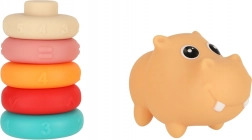 Il grazioso ippopotamo in silicone con anelli impilabili è un giocattolo 2 in 1 intelligente per i più piccoli. Supporta la motricità fine, il riconoscimento dei colori e l'apprendimento dei numeri e dei primi calcoli. I pezzi possono essere utilizzati anche come morbido massaggiagengive durante la dentizione.