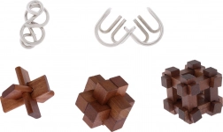 • 5 rompicapi unici – 3 in legno e 2 in metallo