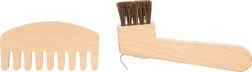Spazzole, pettine e raschietto per zoccoli in legno resistente, progettati per le piccole mani dei bambini e per un gioco realistico.