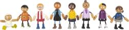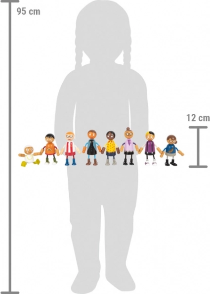 Scopri un mondo ricco di storie con la famiglia flessibile di bambole di legno. Due coppie di genitori, tre bambini e un bebè nel marsupio, che può essere fissato ad altre figurine, offrono infiniti scenari di gioco. Grazie alla combinazione di legno e tessuto, le bambole sono robuste, rifinite nei dettagli e piacevoli al tatto.
