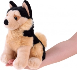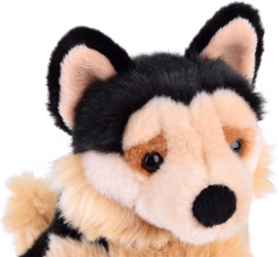Questo pastore tedesco di peluche seduto della linea eco friendly è progettato con attenzione ai dettagli. Proporzioni realistiche, occhi espressivi e la combinazione di pelliccia beige e nera lo rendono un ottimo compagno per i piccoli amanti degli animali. La superficie morbida è piacevole al tatto e invita alle coccole.