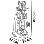 Il carrello di pulizia per bambini con aspirapolvere Smoby Rowenta è un regalo ideale per i bambini che amano imitare i genitori durante la pulizia. Questo set ben fornito include una fedele imitazione di un aspirapolvere che emette suoni realistici e tutto il necessario per la pulizia come scopetta con paletta. Grazie al ripiano speciale per detergenti e panni, e alle due grandi ruote, il carrello è facilmente trasportabile e pratico.