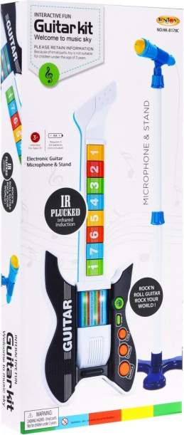 Chitarra elettrica interattiva per bambini con microfono su supporto, luci e suoni 3+