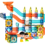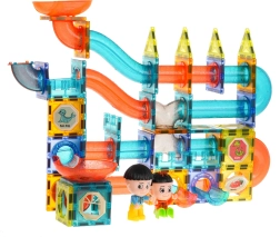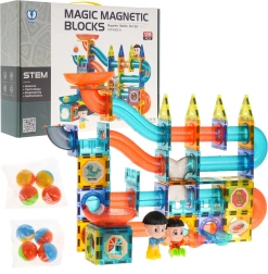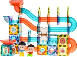 Scopri il mondo della creatività con questo set colorato che include 128 pezzi magnetici. Questo gioco di costruzioni permette di creare una pista per biglie in qualsiasi configurazione. I pezzi sono realizzati con materiali di alta qualità, sono lisci e rifiniti con cura. Grazie ai magneti integrati si collegano facilmente garantendo la stabilità della struttura. Nella confezione è incluso un manuale illustrato per assemblare esempi di piste.
