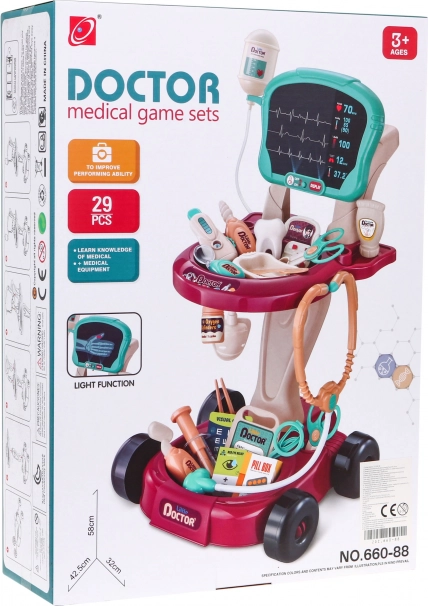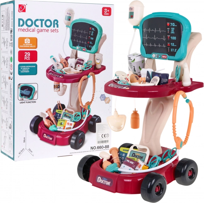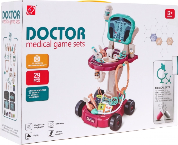 Questo set medico sicuro e colorato è progettato come un carrello comodo su ruote, facilmente spostabile. Fornisce ai bambini tutto ciò di cui hanno bisogno per giocare al dottore sviluppando il senso di cura ed empatia.