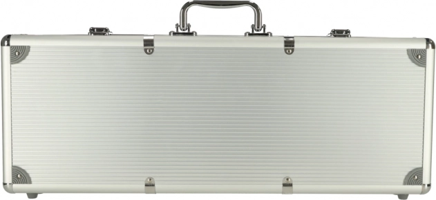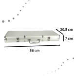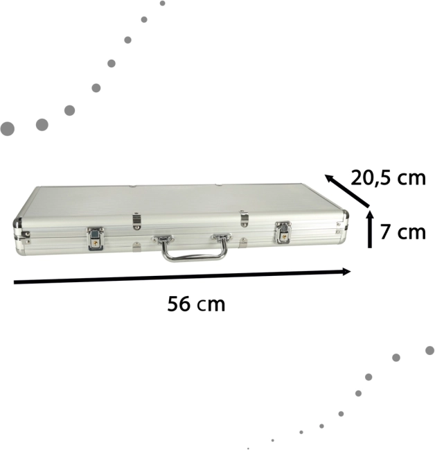 Il set include anche dadi, che aprono possibilità per diversi tipi di giochi, e chiavi per la chiusura sicura della valigetta di trasporto. L'eleganza e la resistenza del design rendono questa valigetta adatta per un trasporto sicuro e la conservazione dei componenti di gioco.