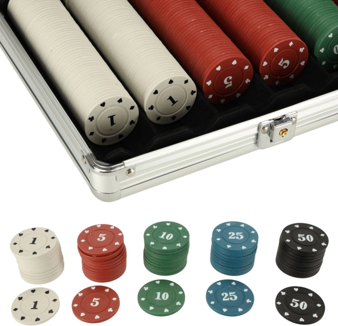Il set di poker include 500 fiches, che permettono di condurre lunghe ed emozionanti partite. Ideale per giochi domestici o feste con amici. Sono inclusi anche due mazzi di carte, che ampliano le possibilità e le varianti di gioco, permettendoti di migliorare le tue abilità in tutti gli stili di poker e altri giochi di carte.