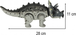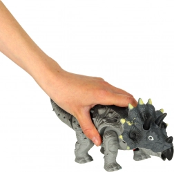 Durante la camminata, il triceratopo si muove, muove la testa e la coda, accompagnato dal ruggito del dinosauro e da effetti luminosi. Perfetto sia per il gioco autonomo che per il divertimento in compagnia. Confezionato in una scatola di cartone con finestra – ideale anche come regalo.