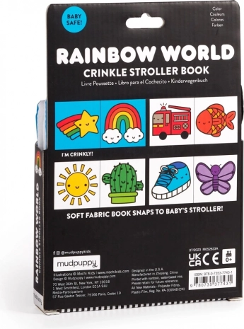 Il morbido libro di stoffa per passeggino con tema Mondo Arcobaleno di MUDPUPPY farà felici i bebè fin dalla nascita. Grazie al pratico anello, si aggancia facilmente al passeggino o al seggiolino auto. Le illustrazioni colorate di Mochi Kids, le pagine fruscianti e le piacevoli texture favoriscono la stimolazione sensoriale, la coordinazione mano-occhio e le prime abilità linguistiche – ideale in viaggio.