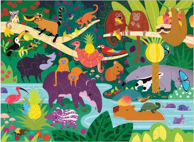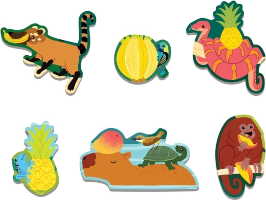 Una giungla vivace con animali e frutta tropicale sviluppa attenzione e immaginazione. Ideale per comporre insieme e imparare giocando.
