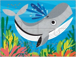 Illustrazioni colorate di balena, tartaruga, piovra e pesciolino favoriscono la conoscenza del mondo e lo sviluppo della fantasia.