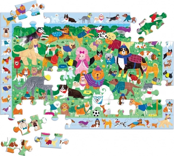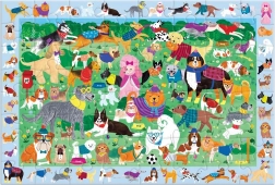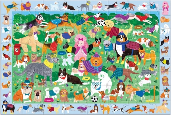 Il puzzle Mudpuppy Cerca e Combina: Giorno dei cani unisce in modo intelligente il montaggio del puzzle e il gioco di ricerca, sviluppando capacità di osservazione, pazienza e motricità fine. Dopo aver completato la scena piena di cagnolini, i bambini possono cercare oltre 40 personaggi nascosti nel riquadro attorno all’immagine: un divertimento ideale dai 4 anni in su.