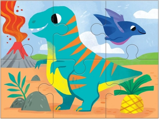 Il set Mudpuppy Dinosauri 4 in 1 propone quattro puzzle diversi con allegre illustrazioni di dinosauri di Kathryn Selbert. Ogni puzzle ha un livello di difficoltà differente (4, 6, 9 e 12 pezzi), ideale per lo sviluppo progressivo della motricità fine, della pazienza e del pensiero logico dei bambini dai 2 anni.