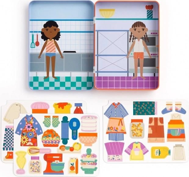 Il set magnetico Posso fare il cuoco di MUDPUPPY offre ai bambini ore di divertimento fantasioso. Nella scatola di metallo, facile da pulire, trovi due scenari di cucina colorati e oltre 40 pezzi magnetici tra abiti e accessori da cucina. I bambini possono combinare i personaggi, inventare storie di cucina e pasticceria e sviluppare così la loro immaginazione.